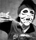 - Es famoso por hacer-como kabuki maquillaje negro-rojo-blanco.