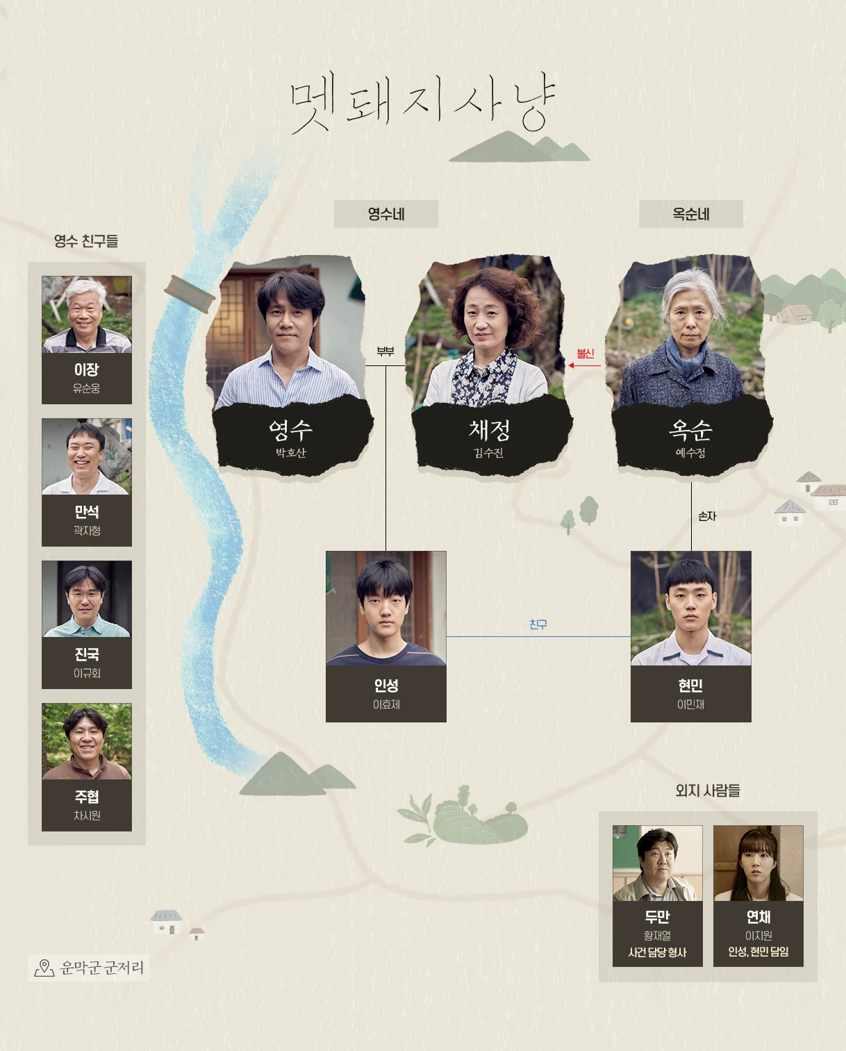 Chae Jung es la esposa de Young Soo. A menudo estalla de ira con Young Soo, pero por lo demás es una persona afectuosa. Debido a su personalidad, es popular entre los aldeanos. Después de que su hijo desaparece el día que Young Soo está cazando jabalíes, queda mentalmente destruida.