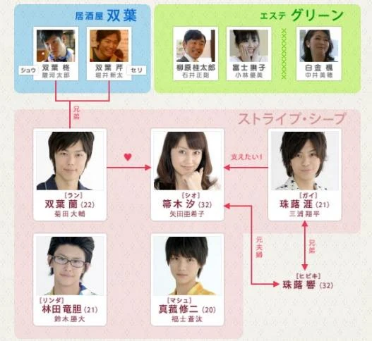 Miura interpreta al hermano menor del ex-marido de Shio, Gai, quien también está enamorado de su cuñada. Yada interpreta a Shio, quien parece ser la dueña de un salón de estética. En secreto, Shio sufre de insomnio debido a su divorcio con su marido infiel. Con el fin de ayudar a las mujeres que se han enfrentado a problemas similares, decide iniciar un servicio "para dormir" con cuatro hombres jóvenes y guapos.