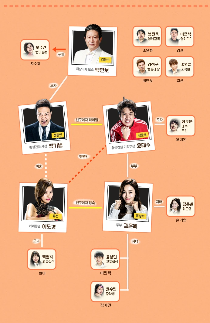 Yoon Tae Soo (Jung Joon Ho) es un jefe pandillero que domina los bares, casino, bares casa de entretenimiento de para adultos en el distrito de Daejeon. Es temido y respetado por su compañeros y regularmente utiliza su fuerza física para conseguir lo que quiere, en especial contra su mayor rival, Baek Ki Beom (Jung Woong In), pero cuando llega a casa se convierte en padre y esposo amoroso de Kim Eun Ok (Moon Jeong Hee), quien lo regaña constantemente,(Lee Min Hyun) es un chico que se mete solo en problemas.